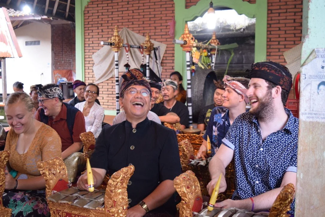 II have taken several groups of students to study with I Made Lasmawan and perform with Gamelan Manik Galih for traditional concert and ceremonial performances in and around the small mountain village of Bangah, Bali. In 2018 I was invited by Professor Lasmawan to join his group for a performance at the International Gamelan Festival in Solo, Indonesia.
